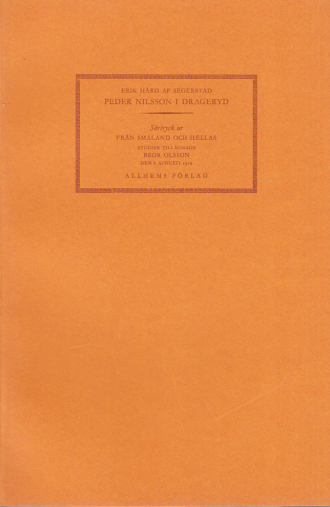 Särtryck ur ‘Från Småland och Hellas. Studier tillägnade Bror Olsson 6 augusti 1959’.