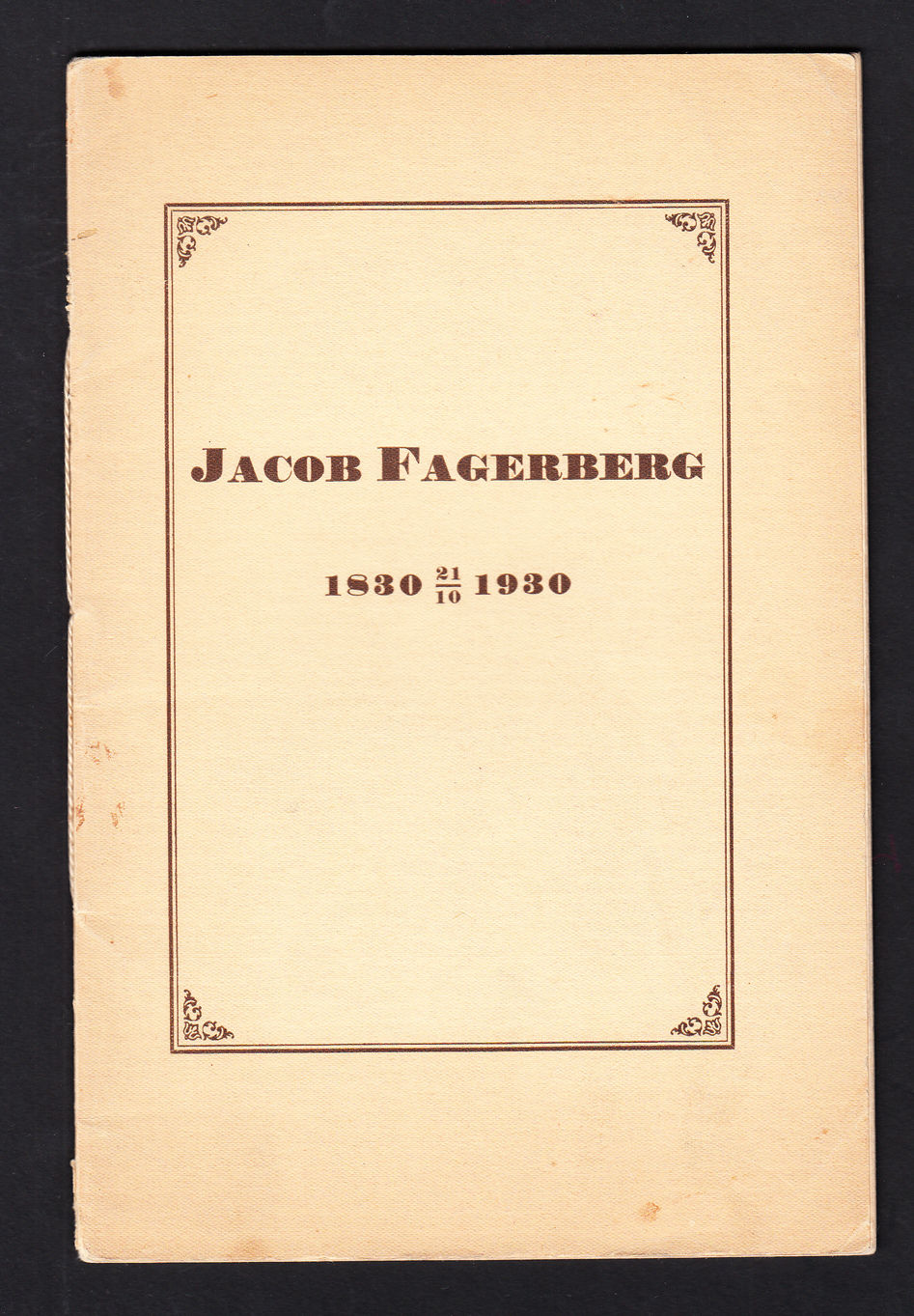 Endast tillgänglig i 3 Libris-bibliotek (KB, NM, SSA). Omslagstitel ‘Jacob Fagerberg 1830 21/10 1930’.