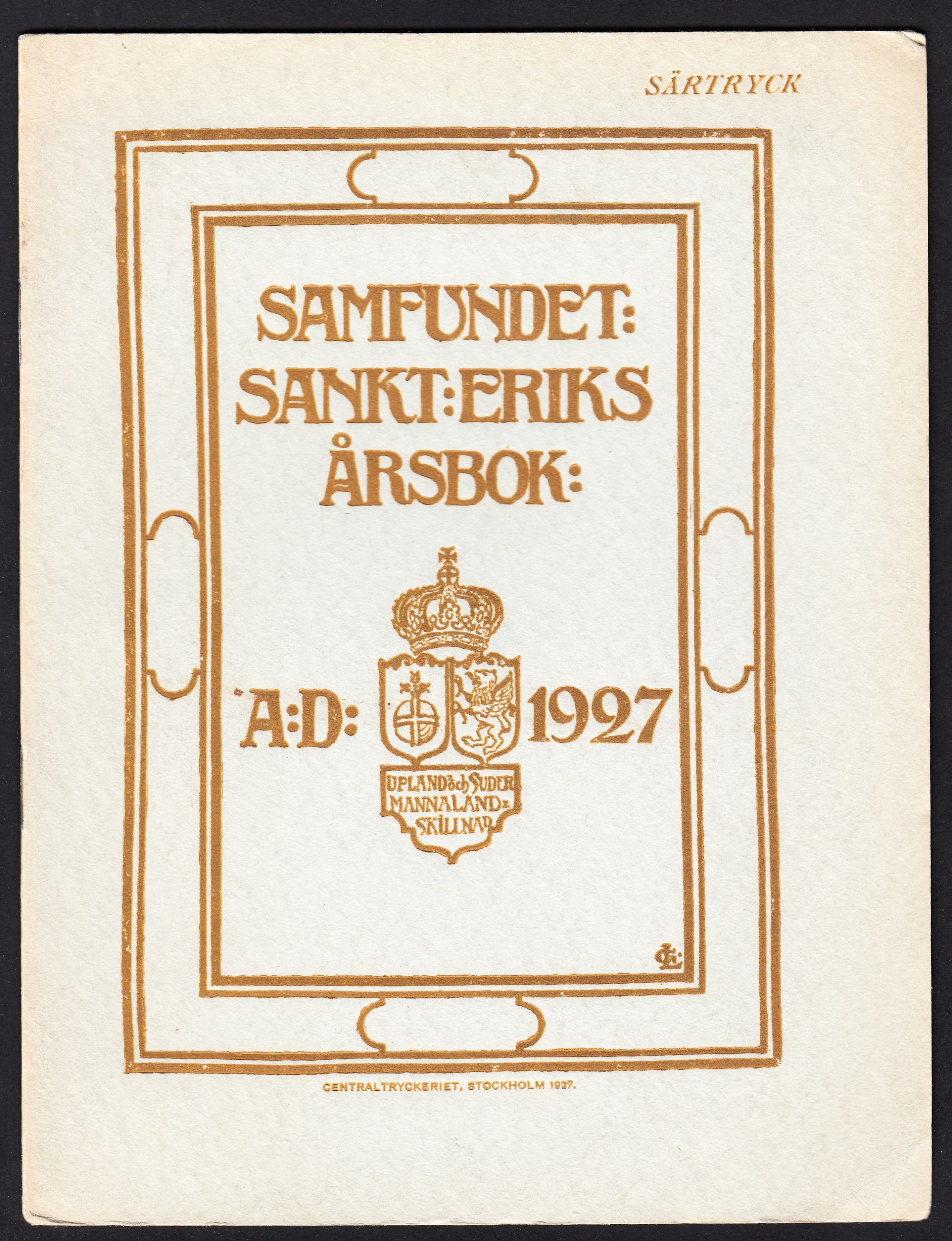 Stockholm, Central-Tryckeriet, 1927. 8:o. s. [145]-153., (1) utvikbar pl.-bl. Illustrerad. Klammerhäftad med styvt tryckt ljusblått pappersomslag. Osprättat exemplar.
