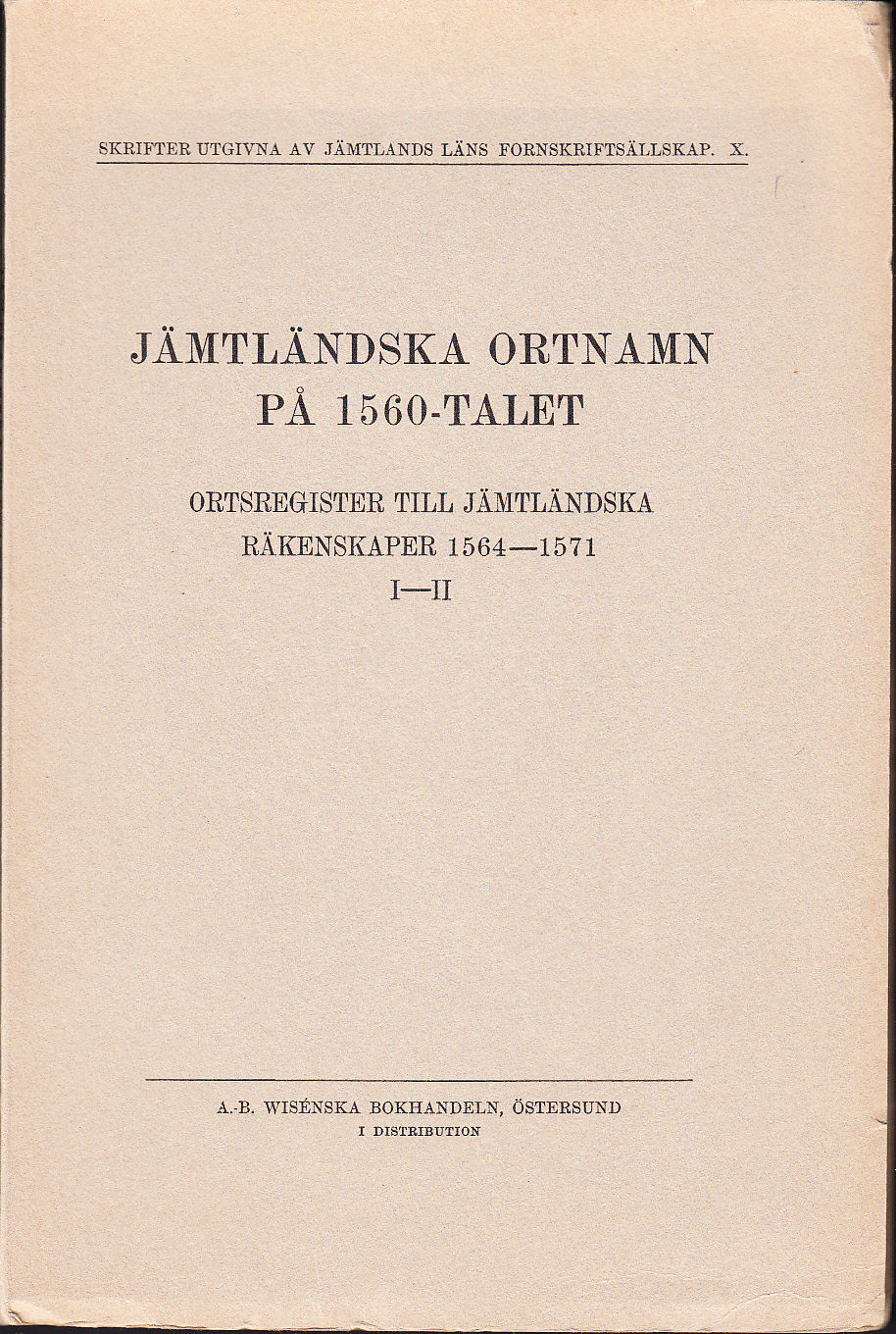 Jämtländska ortnamn på 1560-talet. Ortregister till Jämtländska räkenskaper 1564-1571. I-II.