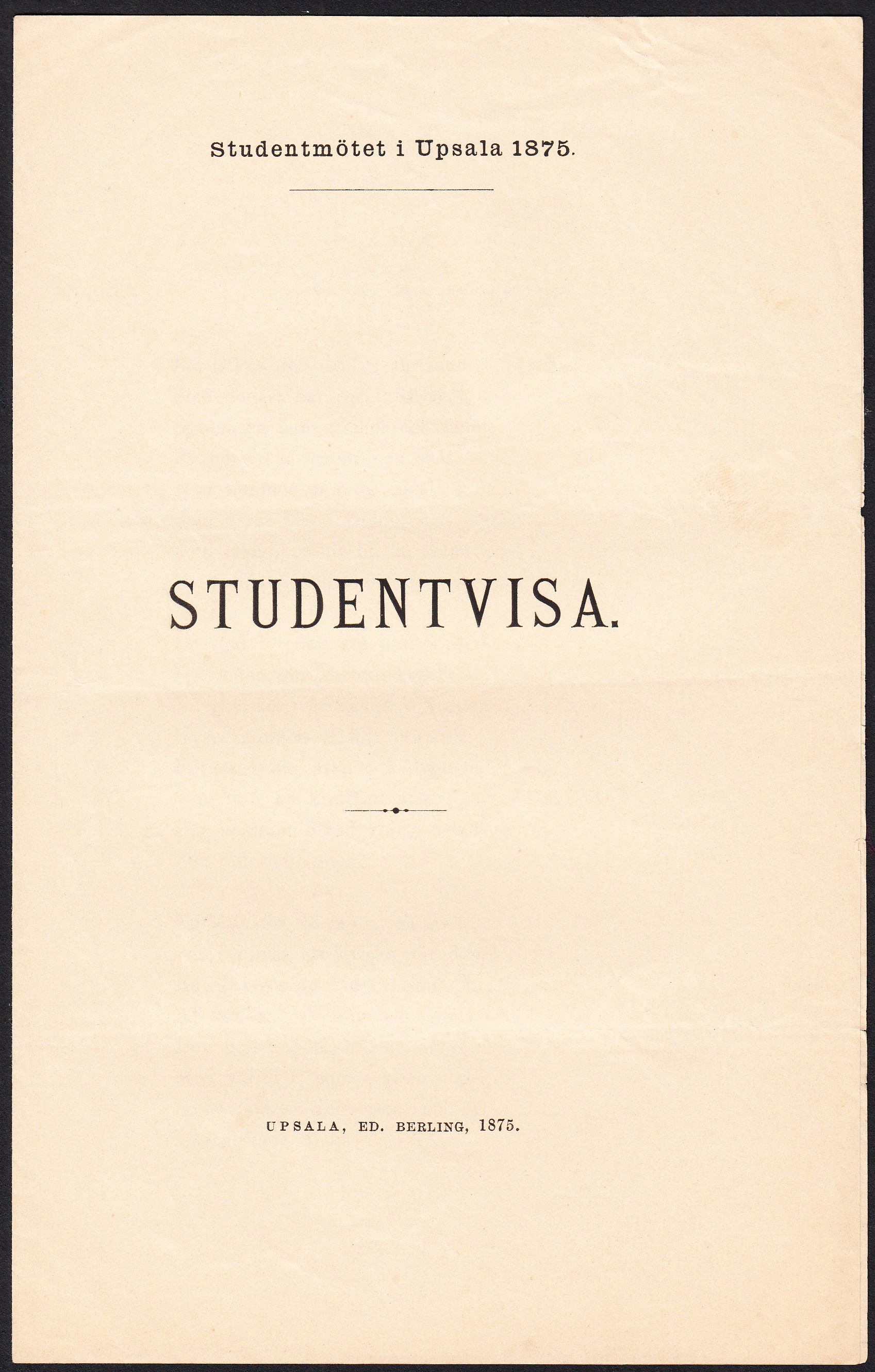 Studentmötet i Upsala 1875. Ej tillgänglig i något Libris-bibliotek. Versen undertecknad ‘E.A. Forssberg’.