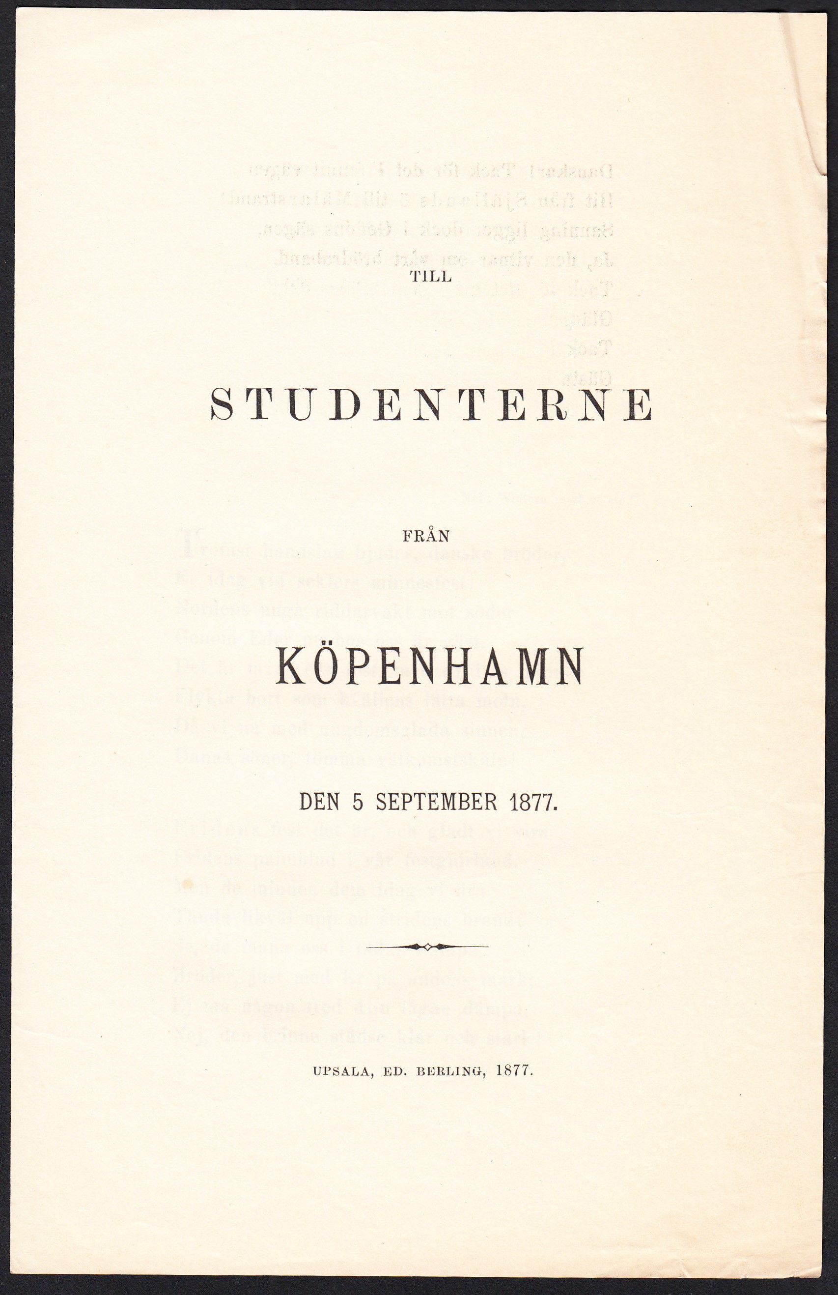 Till studenterne från Köpenhamn den 5 september 1877.
