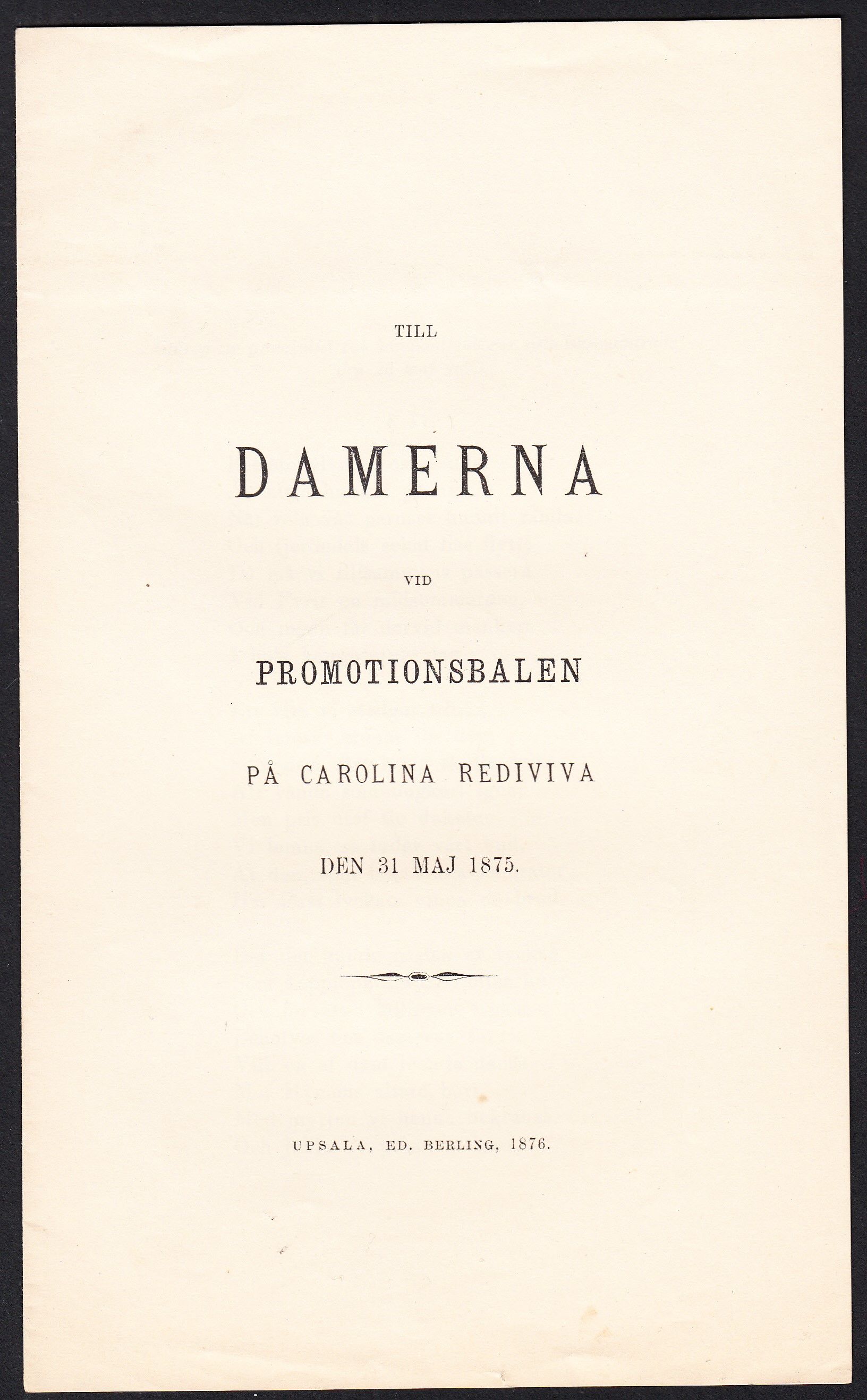Till damerna vid promotionsbalen på Carolina Rediviva den 31 maj 1875.