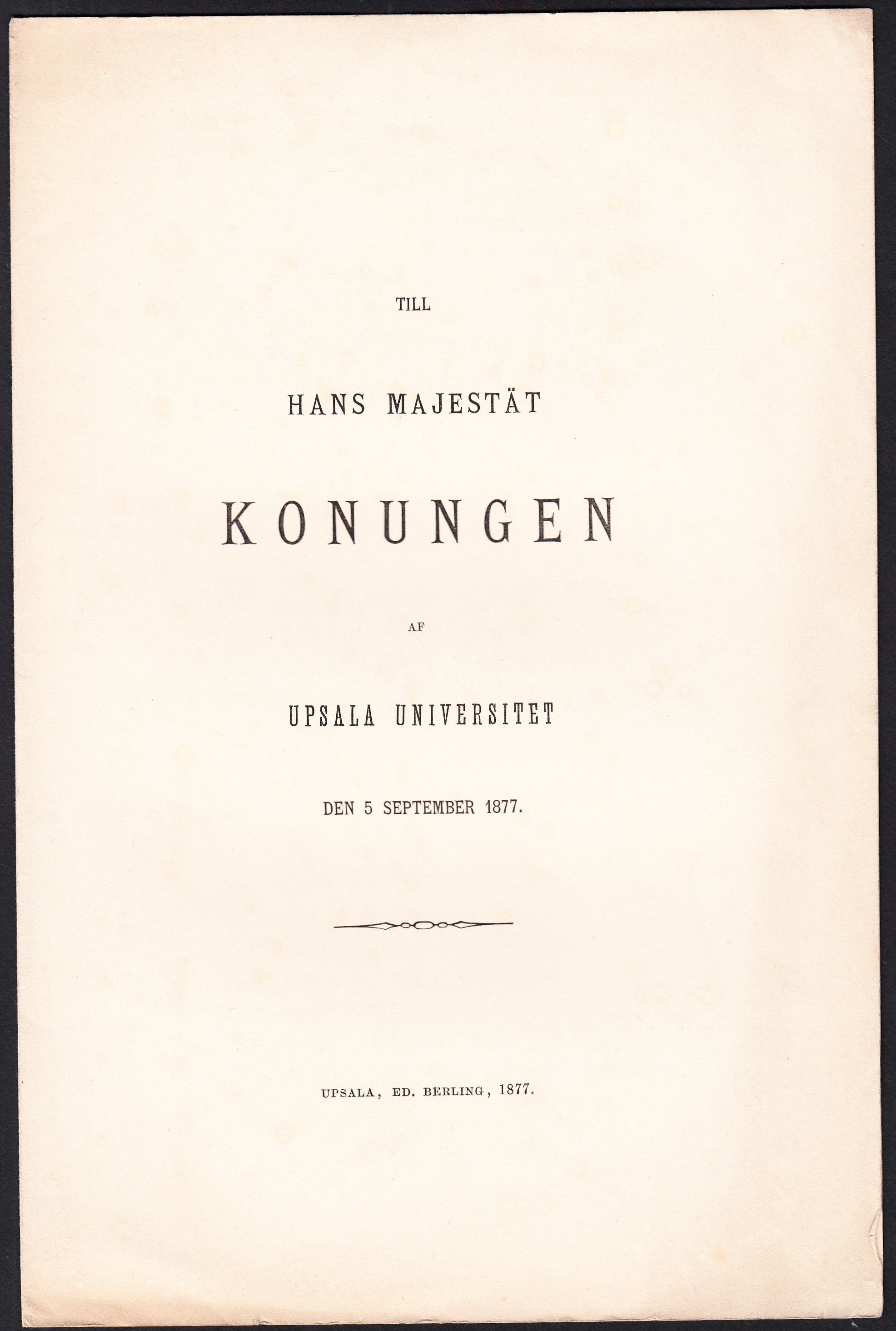Till hans majestät konungen af Upsala universitet den 5 september 1877.
