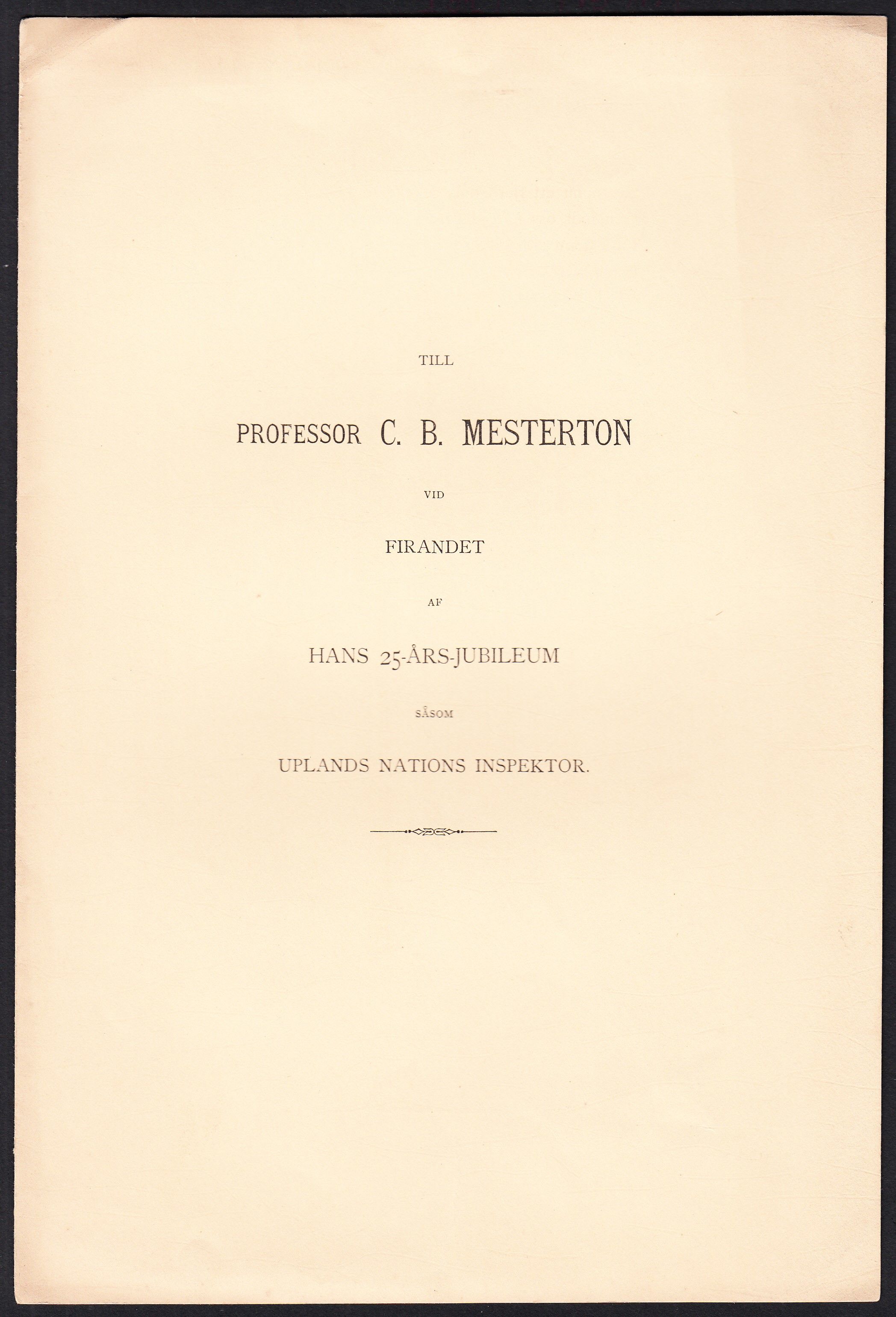 Till professor C.B. Mesterton vid firandet af hans 25-års-jubileum såsom Uplands nations inspektor.