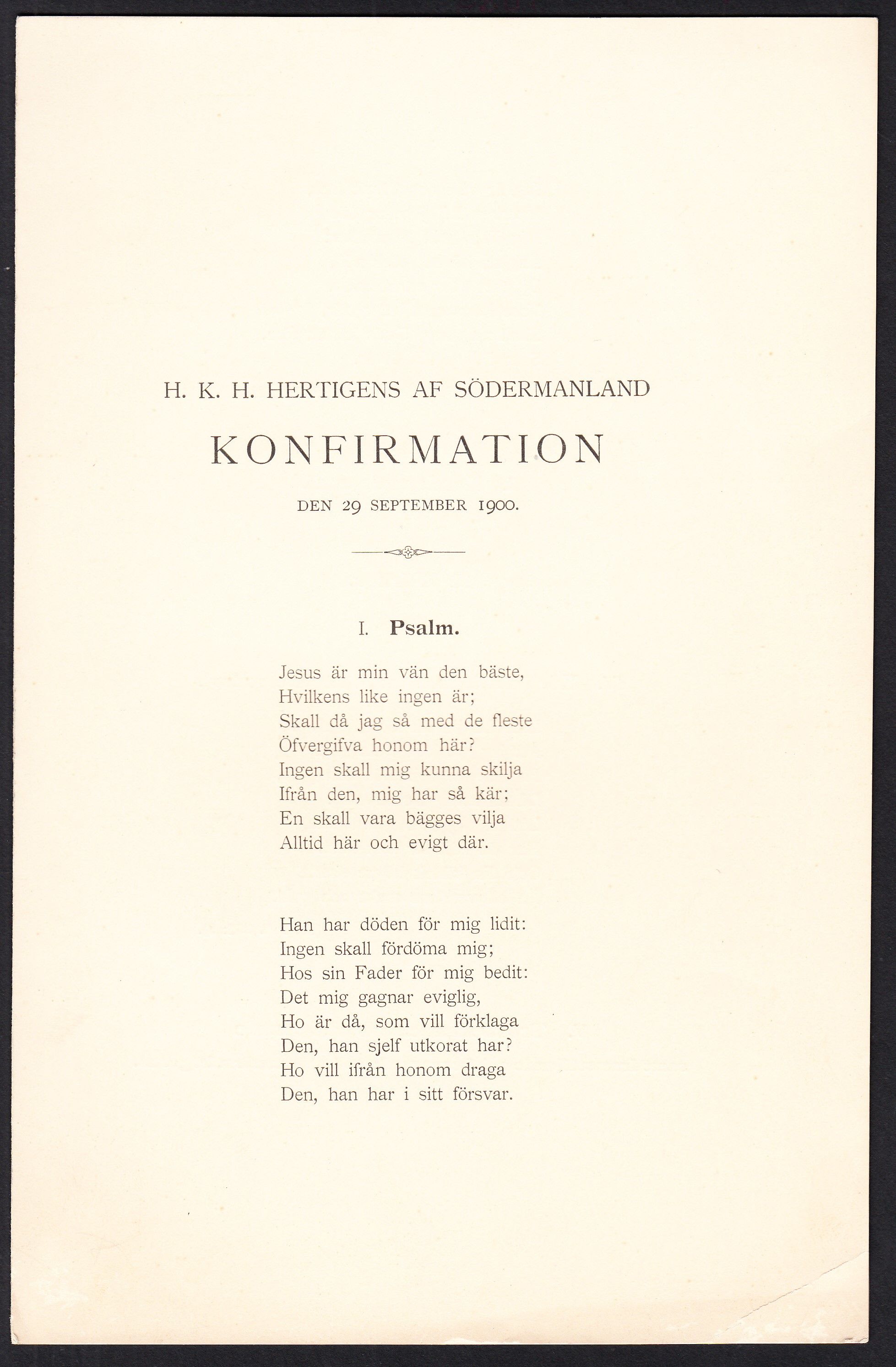 H.K.H. hertigens af Södermanland konfirmation den 29 september 1900 [= rubrik].