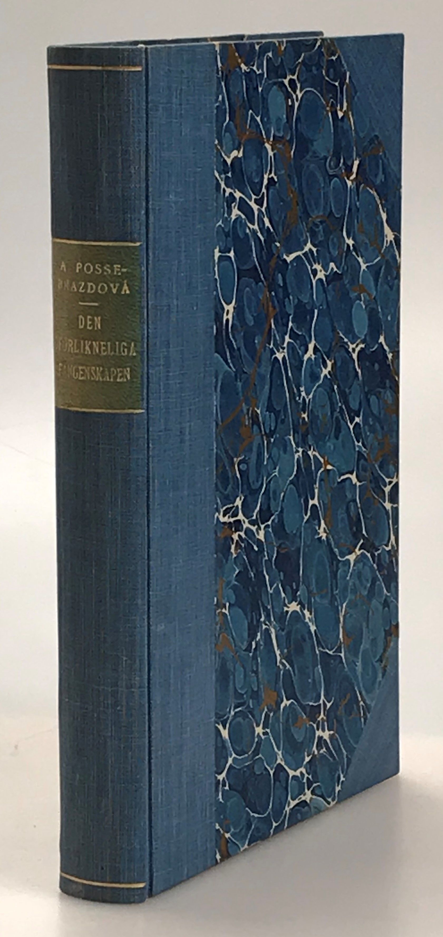 Stockholm, Tryckeri Aktiebolaget Thule, 1931. 8:o. Frontespis, 231, (2) s. Blått halvklotband (Gust. Hedberg) med grön solblekt skinntiteletikett, oljemarmorerat pärmpapper & snitt, båda omslagen medbundna. Allians-exlibris ‘Sparre/Kuylenstierna’ på främre pärmens insida. Ur Pontus Möller’s bibliotek.