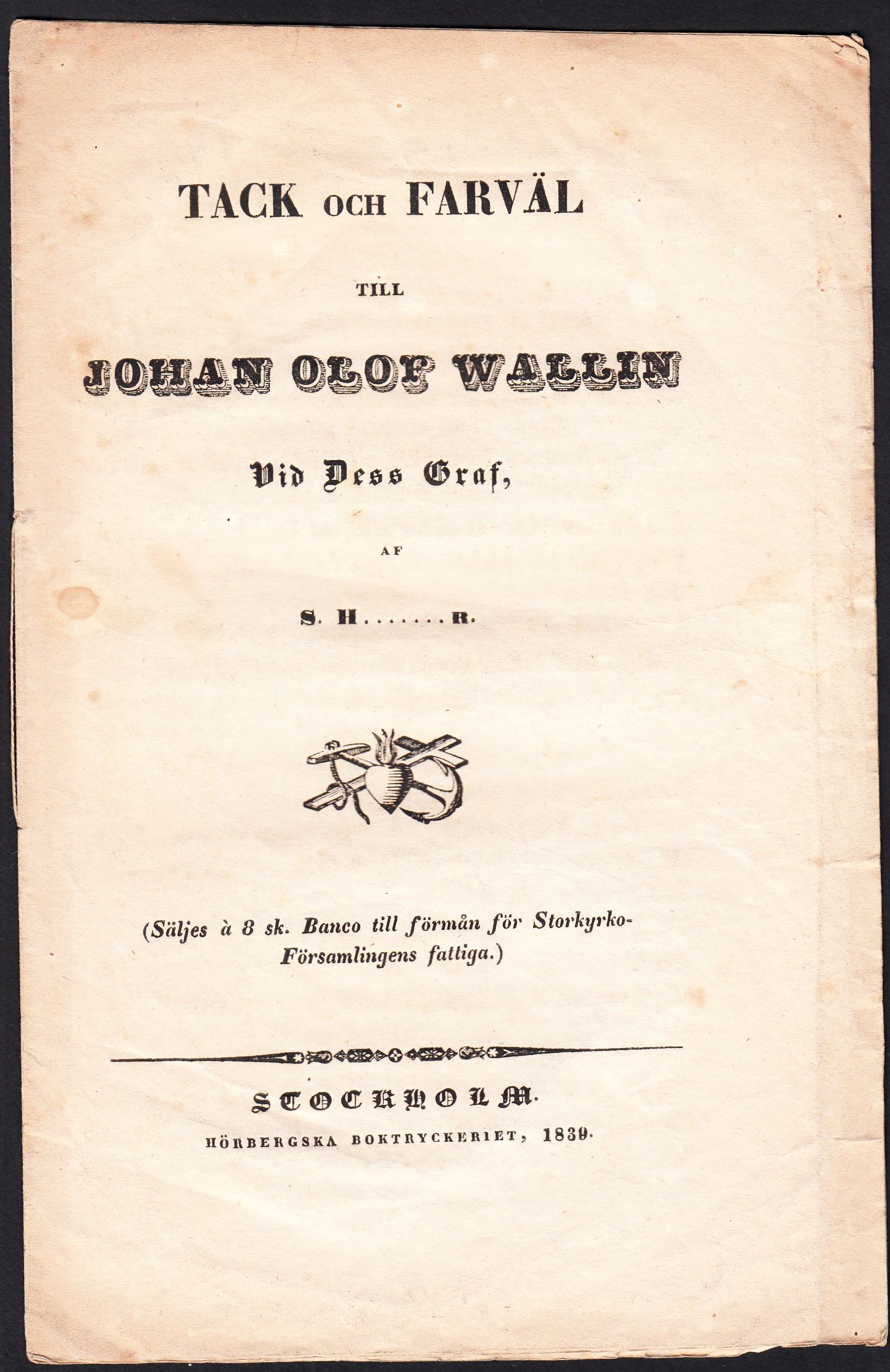 Tack och farväl till Johan Olof Wallin vid dess graf, af S. H....r.