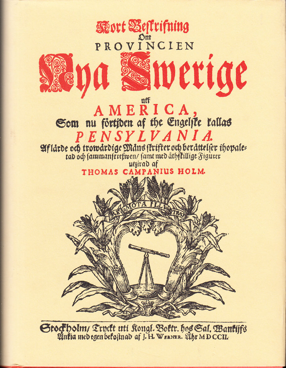 Suecica rediviva 112 [b]. Faksimilutgåva efter originalet som utkom i Stockholm 1702. Innehåll: Om America i gemen; Om provincien Nya Swerige, eller som den nu kallas Pensylvania, uti America; Om the Americaner wid Nya Swerige eller Pensylvania; En orde- och samtals-bok på ofwan:de Americaners språk, beståendes af åthskillige små capitel och delar; Addenda (Om the myncquesser eller mynckuffas, och theras språk; Om någre märkwärdige och sällsamme ting uti America).