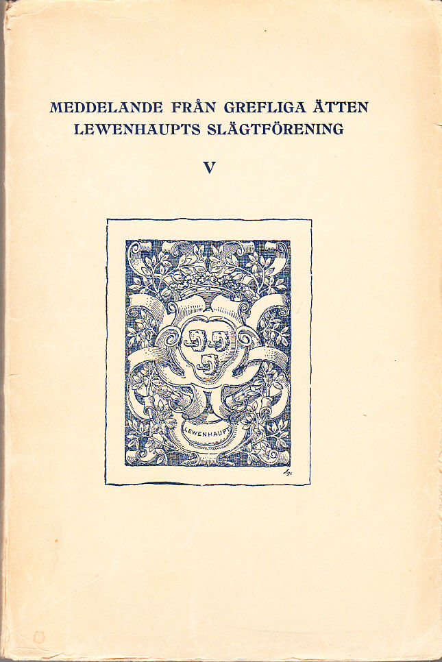 Meddelande från grefliga ätten Lewenhaupts slägtförening. V. Tryckt i 200 numr. ex., detta är nr 117. Innehåll: Ungdom och studier; Inträde i krigstjänst; Överstelöjtnant vid Nylands och Tavastehus läns kavalleriregemente; Överste för Östgöta regemente till häst; Giftermål; Släkten Hohenlohe; Fredsåren 1650-1655; Riksdagen 1655; Polska kriget; I Warschau och Zamosc; Danska kriget; Riksdagen 1660; Falkenstein; Tyska resan 1662-1663; Bretzenheim; Åren 1664-1666; Charlottte Hohenlohes död; Riksrådskallelse; Jordägendom; De sista åren; Register; Illustrationer.