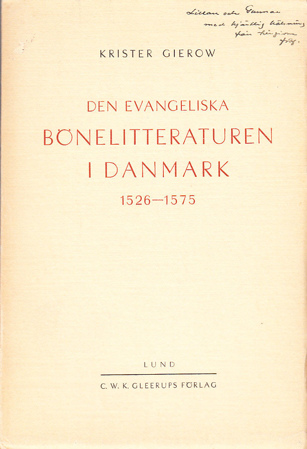 Den evangeliska bönelitteraturen i Danmark 1526-1575. En källanalytisk-typologisk studie. [Utg. av] C.W.K. Gleerups förlag.