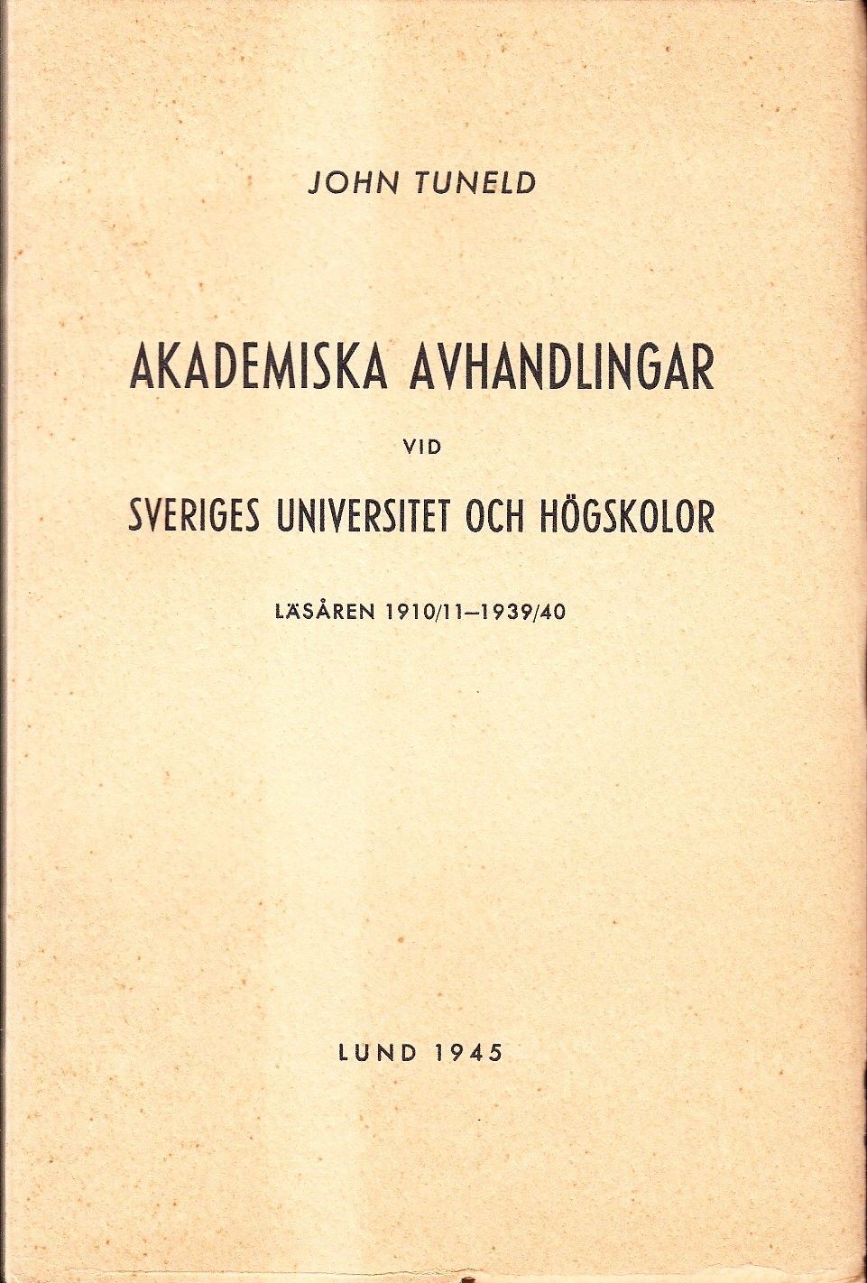 Akademiska avhandlingar vid Sveriges universitet och högskolor läsåren 1910/11-1939/40. Bibliografi.