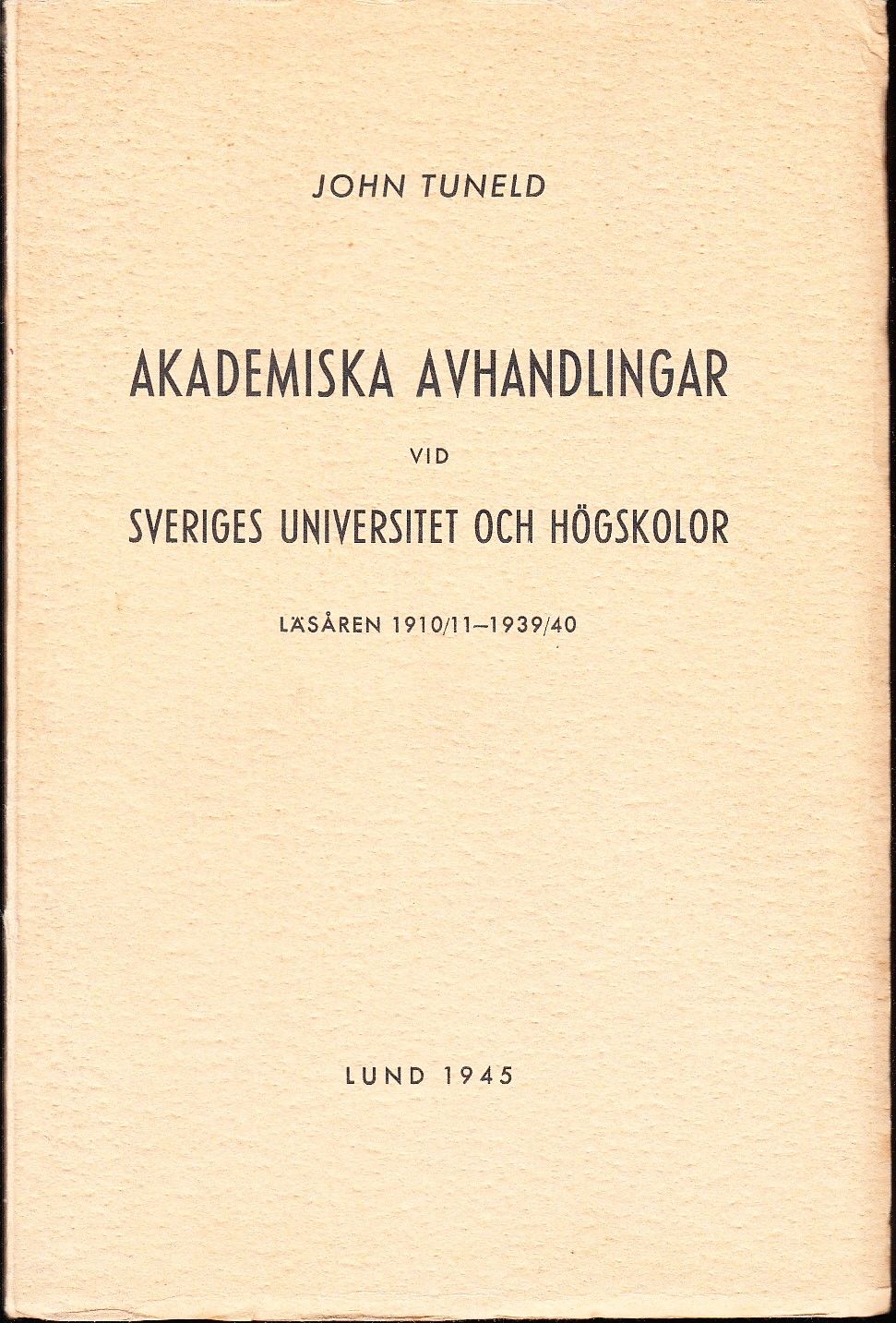 Akademiska avhandlingar vid Sveriges universitet och högskolor läsåren 1910/11-1939/40. Bibliografi.