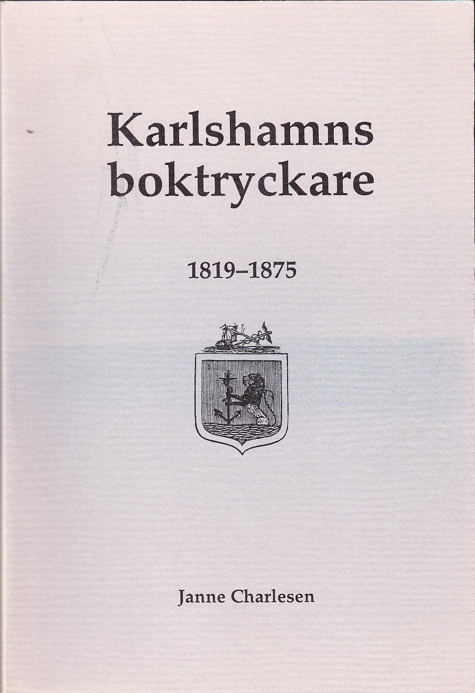 Tryckt i 300 exemplar. Innehåll: Inledning; Jonas Söderström (Religiös litteratur; Rättegångshandlingar; Nykterhetsskrifter; Övriga tryck; Personverser; Accidenstryck; Carlshamns Tidning; Bibliografi); Peter Anders Berger (Bibliografi); Bengt Berckenmeyer (Bibliografi); Magnus Florén (Carlshamns Posten; Bibliografi); Johan Magnus Stenbeck (Religiös litteratur; Övriga tryck; Läroböcker; Personverser; Nykterhetsskrifter; Accidenstryck; Carlshamns Tidning; Kistebrev; Bibliografi); Erik Gustav Johansson (Religiös litteratur; Övriga tryck; Skillingtryck; Illustrationer; Carlshamns Allehanda; Accidenstryck; Bibliografi); Gustav Johansson; Erik Olof Lagerblad - Nya Tryckeri-Bolaget (Religiös litteratur; Övriga tryck; Tidningen Carlshamn; Bibliografi); Källförteckning.