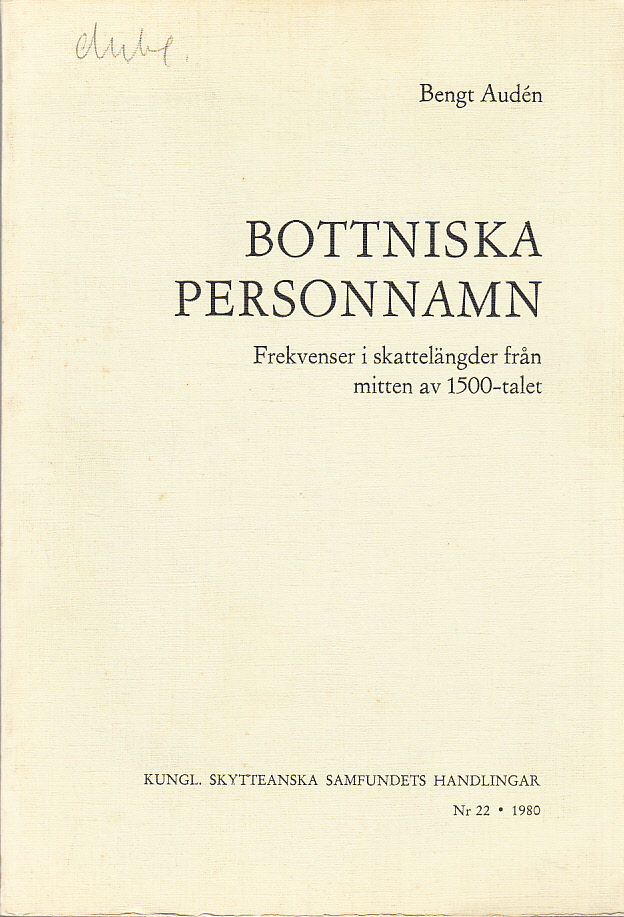 Bottniska personnamn. Frekvenser i skattelängder från mitten av 1500-talet.