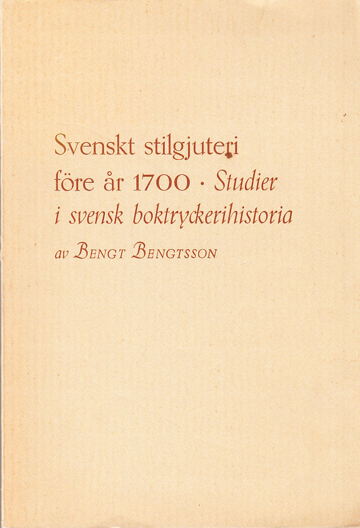 Svenskt stilgjuteri före år 1700. Studier i svensk boktryckerihistoria. [Utg. av] Skolan för bokhantverk.