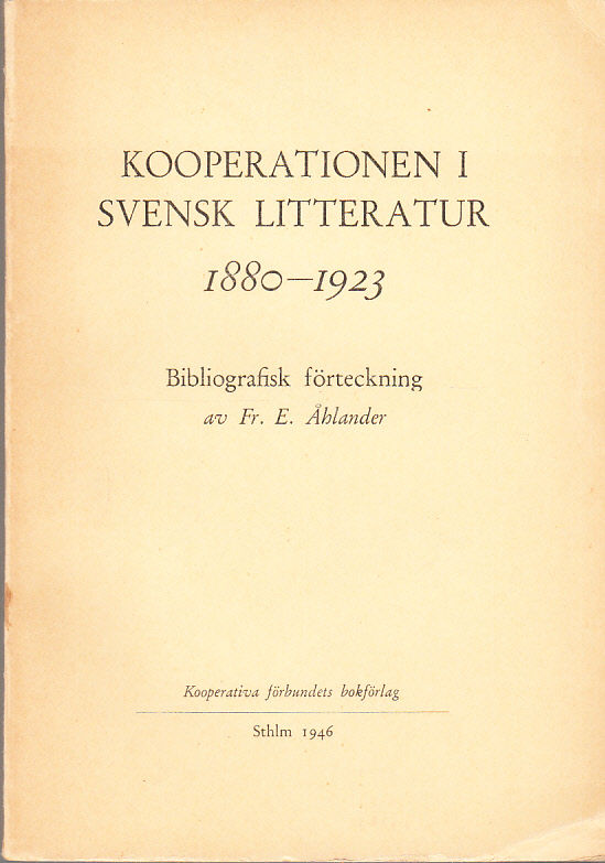Kooperationen i svensk litteratur 1880-1923. Bibliografisk förteckning av Fr. E. Åhlander. [Utg. av] Kooperativa förbundets förlag.