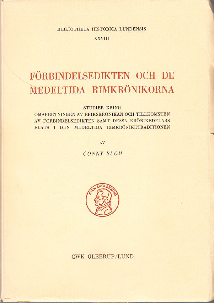 Förbindelsedikten och de medeltida rimkrönikorna. Studier kring omarbetningen av Erikskrönikan och tillkomsten av Förbindelsedikten samt dessa krönikedelars plats i den medeltida rimkröniketraditionen. [Utg. av] CWK Gleerup.