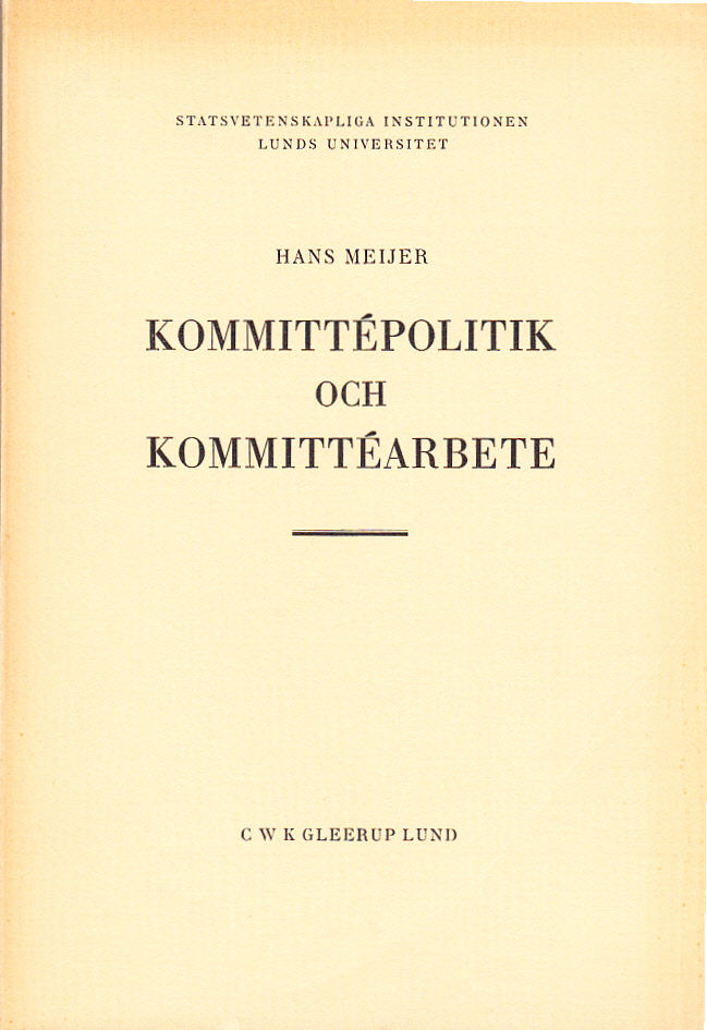 Kommittépolitik och kommittéarbete. Det statliga kommittéväsendets utvecklingslinjer 1905-1954 samt nuvarande funktion och arbetsformer. Ak. avh. [Utg. av] CWK Gleerup.
