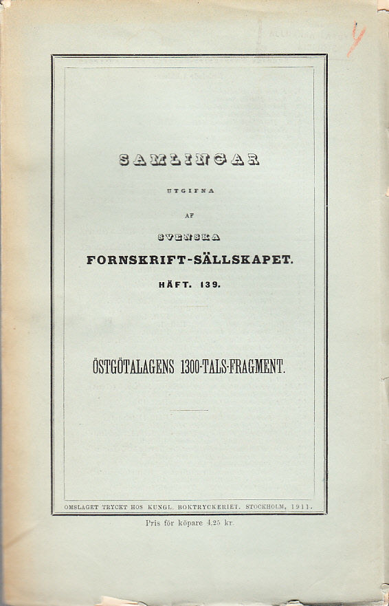 Östgötalagens 1300-talsfragment. Utgifna jämte inledning af Emil Olson.