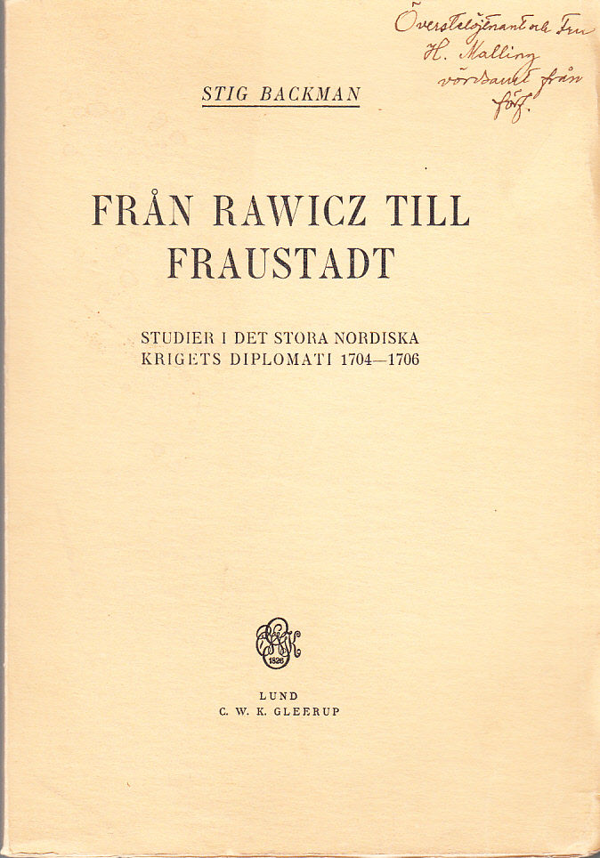 Från Rawicz till Fraustadt. Studier i det stora nordiska krigets diplomati 1704-1706. Akademisk avhandling. [Utg. av] C.W.K. Gleerup.