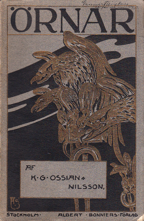 Första upplagan. Omslag av Arthur Sjögren. Ändrade sitt ursprungliga efternamn Nilsson, först till Ossian-Nilsson (fram till 1914), sedan till Ossiannilsson. Debuterade 1895 (då han fortfarande studerade i Lund) med ‘Förteckning på i svenska språket förekommande umbärliga främmande ord och uttryck’. Poesidebuten gjorde han 1900 med Masker, vilken följdes upp av Hedningar 1901 och Örnar 1902.