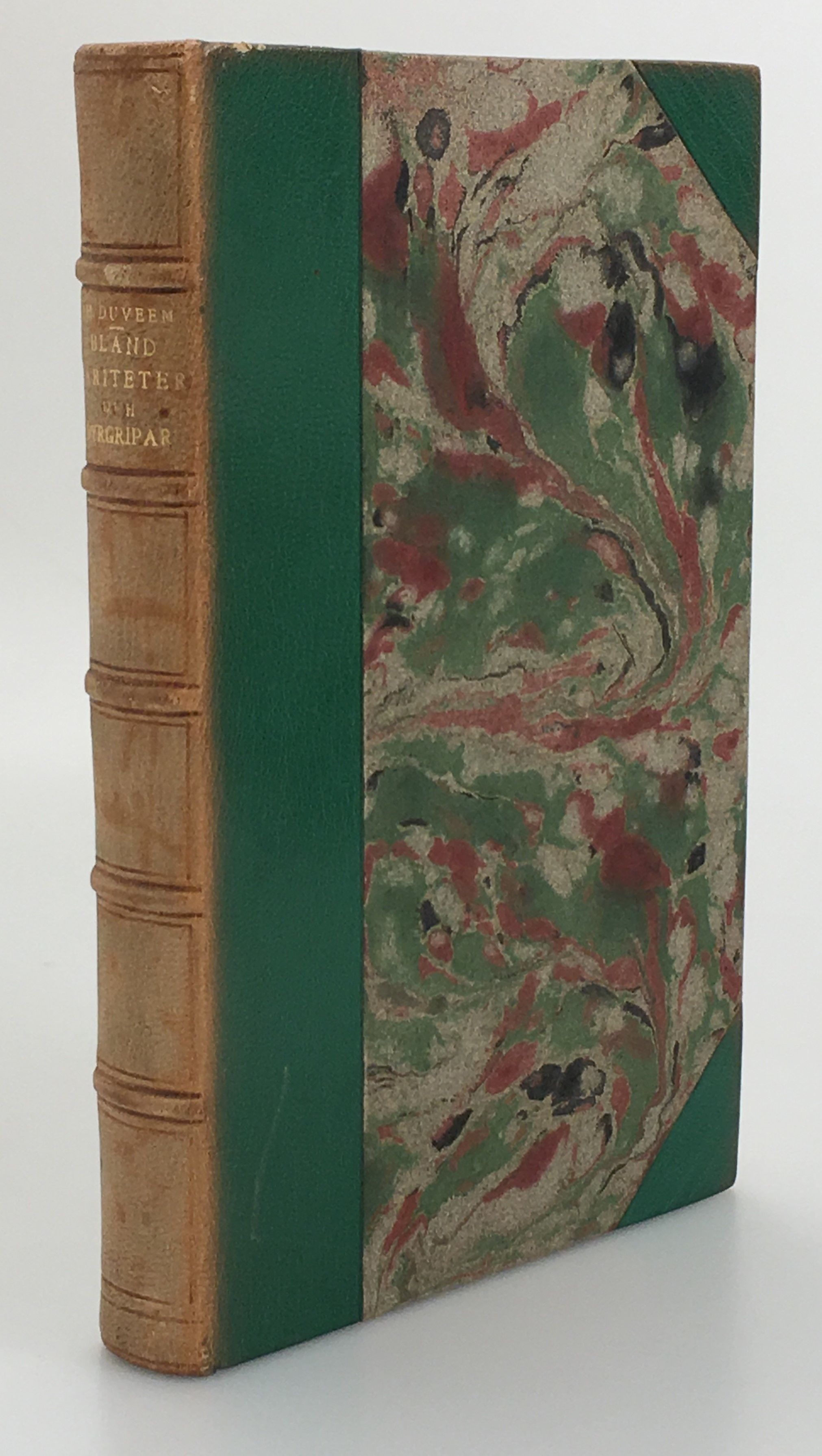 Helsingfors, Mercators Tryckeri, 1937. 8:o. 230 s., (16) pl.-s. Illusstrerad. Grönt halvmarokängband med fem upphöjda bind bind, ryggtitel i guld, marmorerat pärmpapper. Skuret övre snitt, övriga endast putsade. Båda omslagen medbundna. Kraftigt solblekt rygg. Exlibris ‘SAO’ [= monogram för Sten Allan Olsson], legendarisk skeppsredare i Göteborg, på främre pärmens insida.