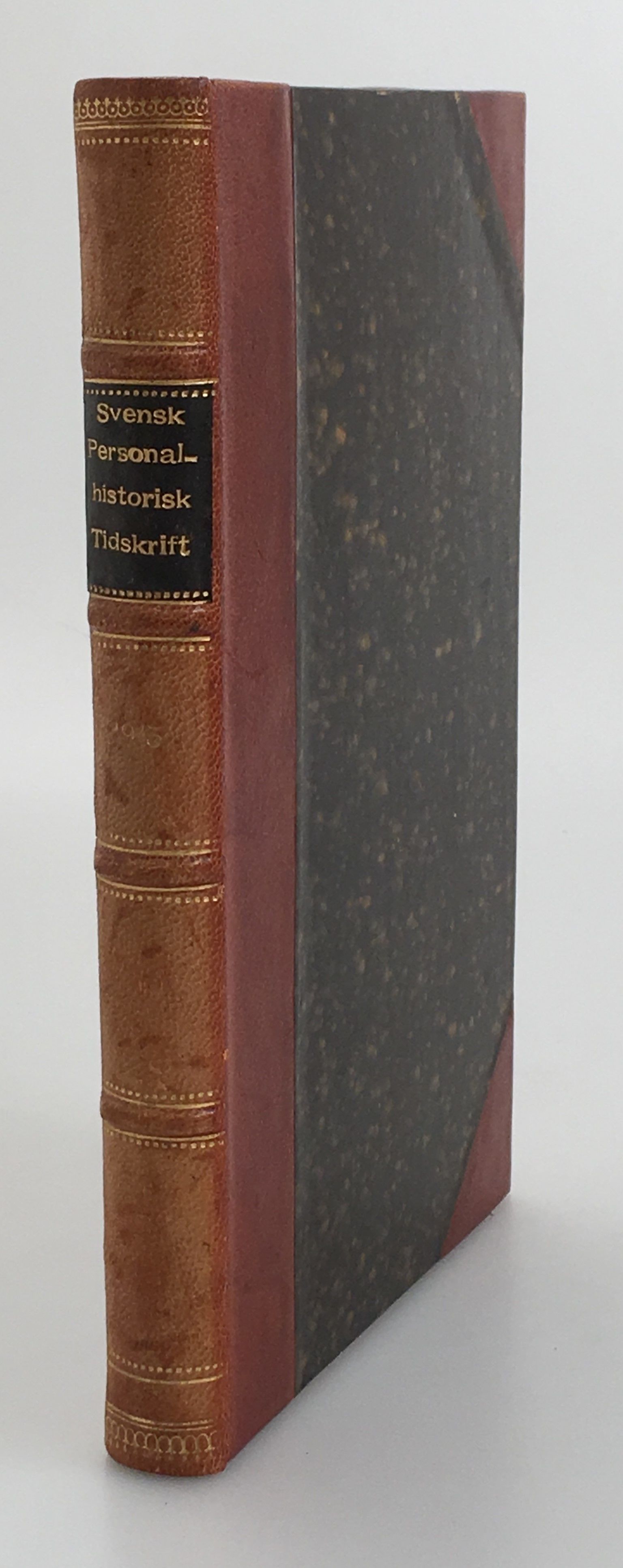 Stockholm, P.A. Norstedt & Söner, 1916. 8:o. (2), 285 s, (6) pl.-bl. Illustrerad. Brunt lätt nött halvskinnband med fyra upphöjda bind, svart ryggtiteletikett, marmorerat pärmpapper. Något solblekt rygg.