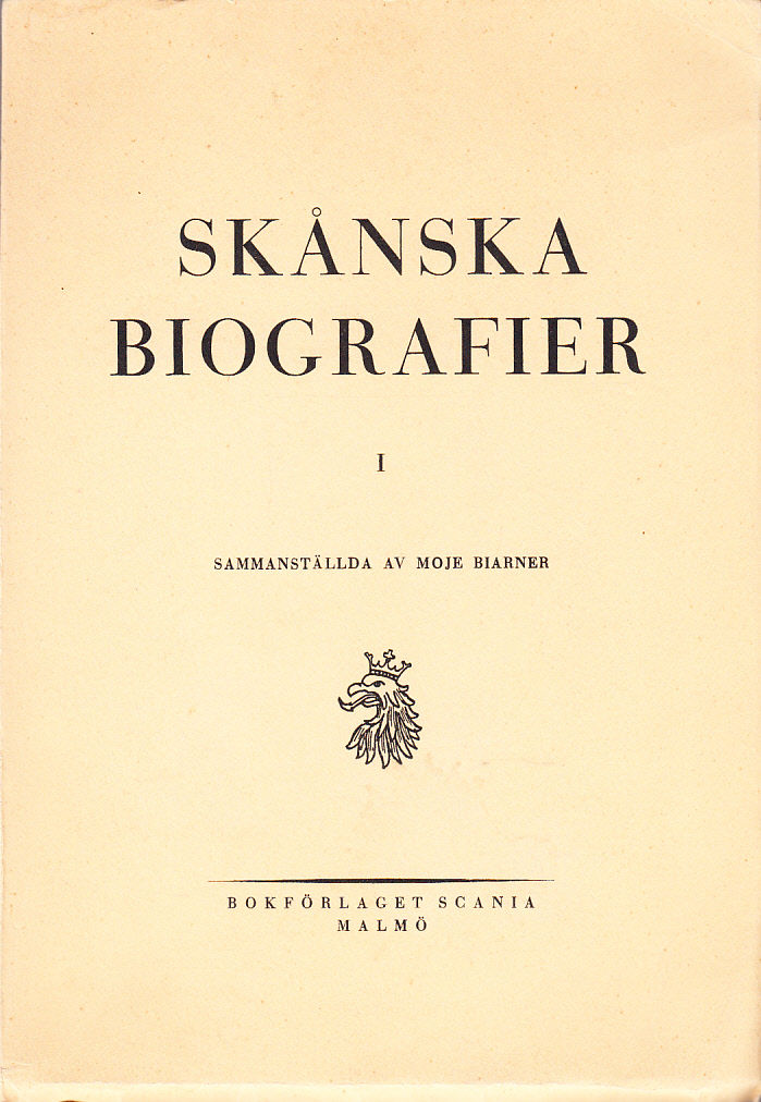 Skånska biografier I. Sammanställda av Moje Biarner. [Utg. av] Bokförlaget Scania, Malmö.