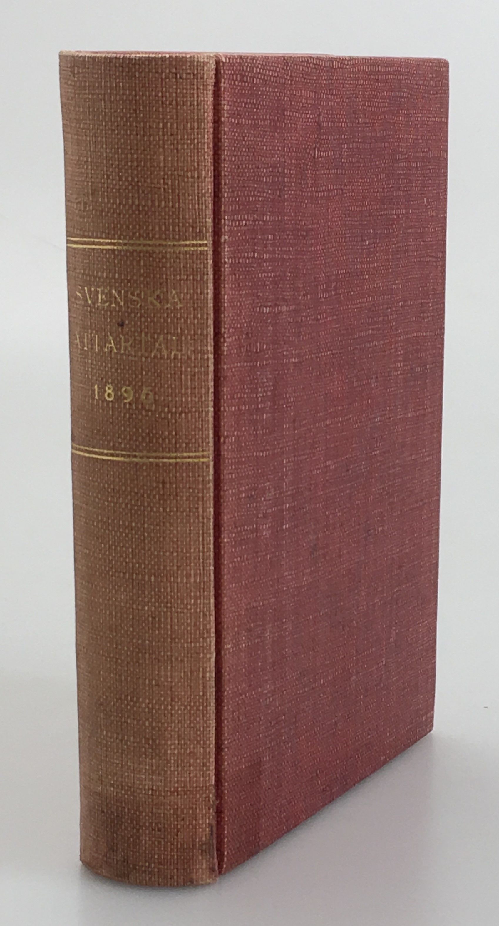 Stockholm, tryckt i Normanska Tryckeriet, 1896. 8:o. xv, 504 s. Rött gediget klotband med enkel ryggtitel i guld. Solblekt rygg. Ryggfot med spår efter borttagen etikett med hyllsignum. Blindstämpel ‘Västra Sveriges Genealogiska Förening’ på försättsbladet, Bibliotekstillhörighet i blyerts ‘Herrljunga Folkbibliotek’ på titelbladet och bakre pärmens insida, samt deras makuleradstämpel.