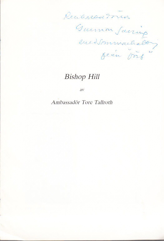 U.o.o.å. [1985]. 8:o. 7 s. Illustrerad. Klammerhäftad. Tillskrift ‘... / Gunnar Jarring / med sommarhälsning / från förf.’.