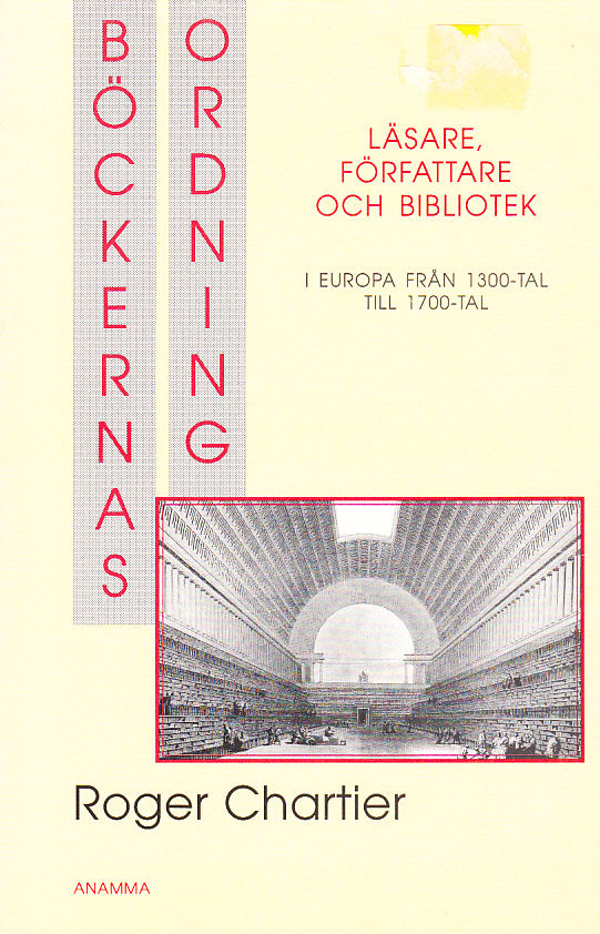 Böckernas ordning. Läsare, författare och bibliotek i Europa mellan 1300-tal och 1700-tal. Översättning av Jan Stolpe. [Utg. av] Anamma.