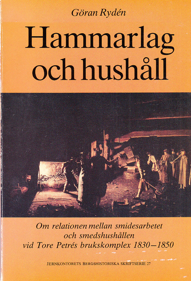Jernkontorets bergshistoriska skriftserie 27. Ny, tryckt, utgåva av den tidigare stencilerade avhandlingen som framlades vid Uppsala universitet 1990. Innehåll: Förord; Utgångspunkter (Undersökningens teoretiska bakgrund; Den svenska järnhanteringen under första hälften av 1800-talet; Tore Petrés brukskomplex och undersökningens övriga bruk; Utgångspunkter för den fortsatta studien); Smidesarbetet och smederna (Tysksmedjan och tysksmidet; Stångjärnssmidet på bruken; Hammarsmederna vid tysksmidet; Hammarlaget: Tysksmidets basenhet); Smedshushållens livscykel och kvinnornas arbete (Hammarsmedshushållens livscykel; ‘En nödtorftig bergning’ - Smedshushållens materiella situation; Arbetslaget i hemmet och kvinnornas arbete; Hushållet i brytpunkten mellan boendet, arbetet, mathållningen, och släktskapet); Avslutning (Hammarlaget och hushållet: Två lika nödvändiga betingelser för smidesarbetet); Summary; Appendix I. Rekonstruktionen av hammarlagen och hushållen; Appendix II. Ritningar över tysksmedjor; Appendix III. Produktionsstatistik och noteringar om den tekniska utvecklingen; Appendix IV. Rekryteringen av smeder; Appendix V. Utnyttjade bouppteckningar; Appendix VI. Släktträd över släkterna Ekengren, Pjerrou och Skog; Appendix VII. Om mynt, mått och vikt; Källor och litteratur (Otryckta källor; Tryckta källor; Litteratur).