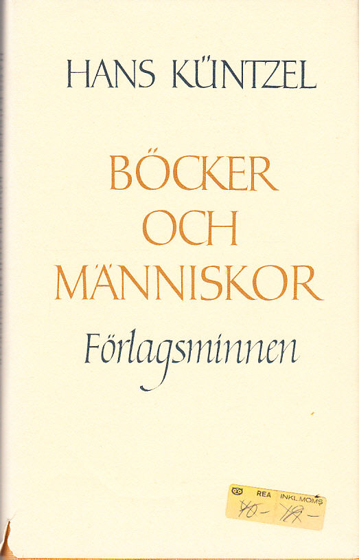 Böcker och människor. Förlagsminnen. [Utg. av] Gebers.