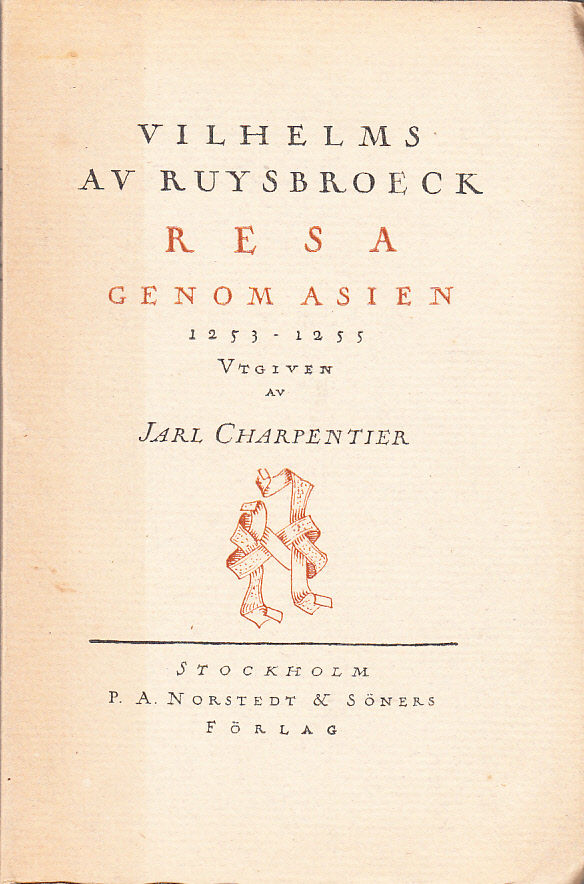 Franciskanermunken Vilhelms av Ruysbroeck resa genom Asien 1253-1255. Översatt och försedd med inledning och anmärkningar av Jarl Charpentier. [Utg. av] P.A. Norstedt & Söners förlag.