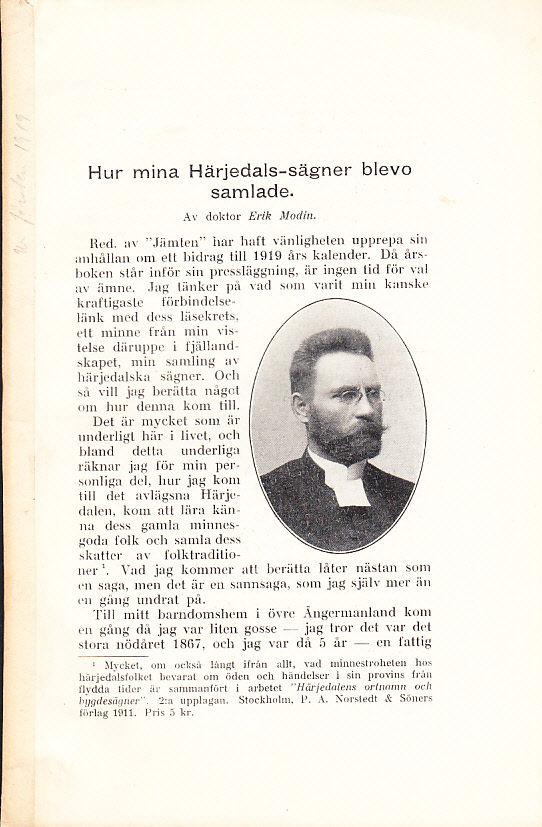 Hasselberg ‘Bibliografiska anteckningar ...’ s. 160. Extrakt ur ‘Jämten 1919’.