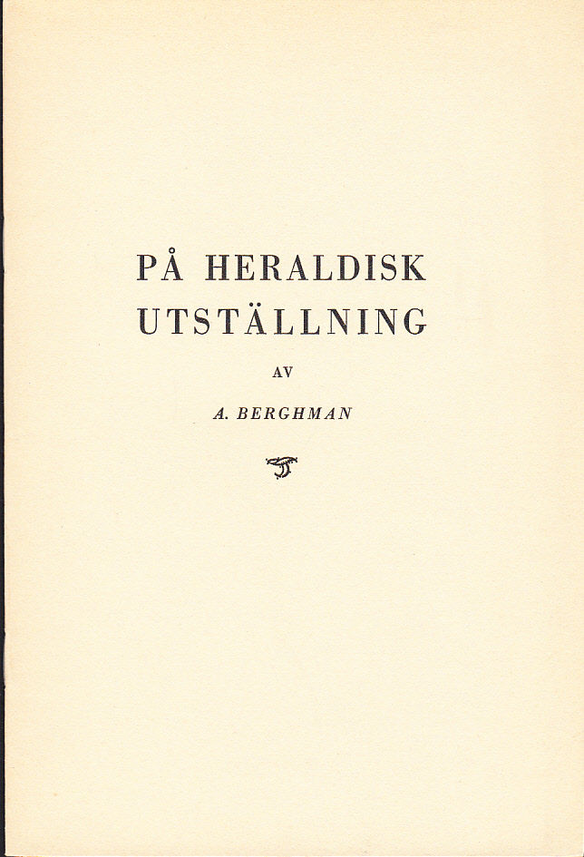 Löst bilagt informationsblad rörande minneskatalog över samma utställning. Särtryck ur ‘Meddelanden från Riksheraldikerämbetet V, 1936’. Om heraldisk utställning 5/11 - 12/12 1936 å Museum & Art Gallery, City of Birmingham. Sammanfattning på franska med titeln: L'exposition héraldique de Birmingham.