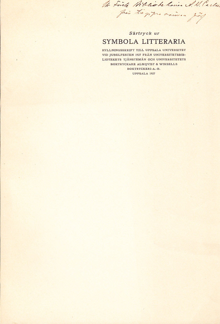 Särtryck ur ‘Symbola Litteraria, 1927’.