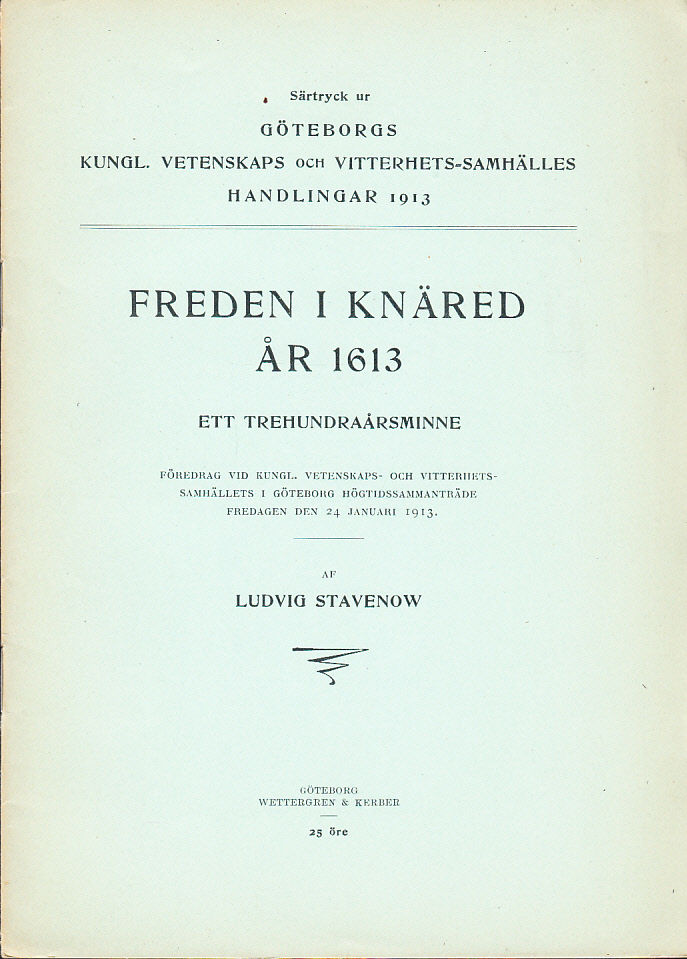 Freden i Knäred 1613. Ett trehundraårsminne. Föredrag vid Kungl. vetenskaps- och vitterhetssamhällets i Göteborg högtidssammanträde fredagen den 24 januari 1913.
