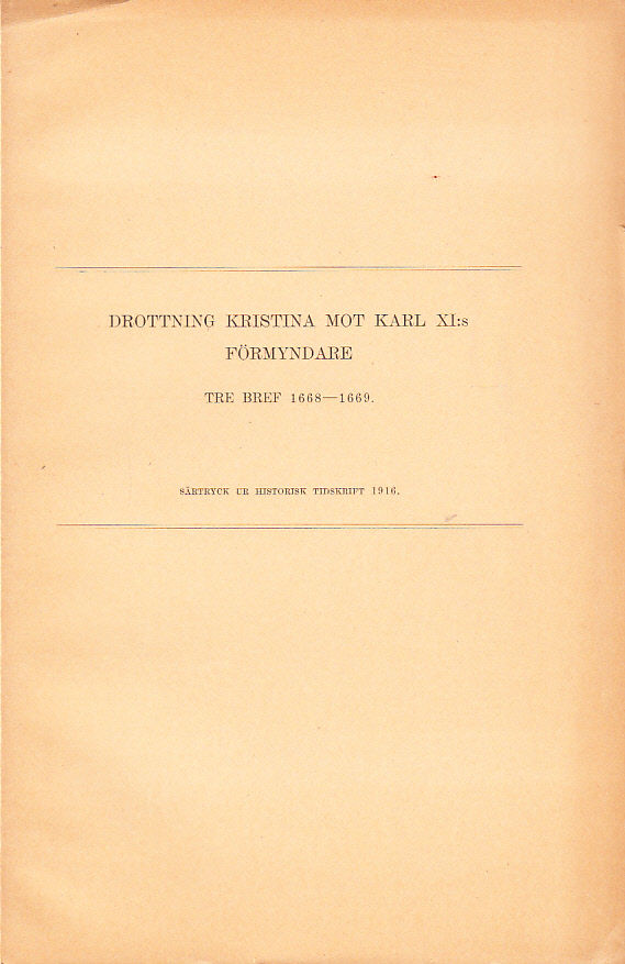 Drottning Kristina mot Karl XI:s förmyndare. Tre bref 1668-1669 [= rubrik].