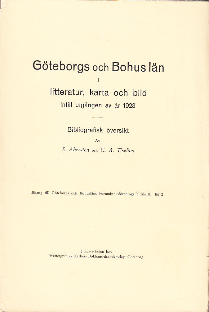 Göteborgs och Bohus län i litteratur, karta och bild intill utgången av år 1923. Bibliografisk översikt av S. Aberstén och C. A. Tiselius.