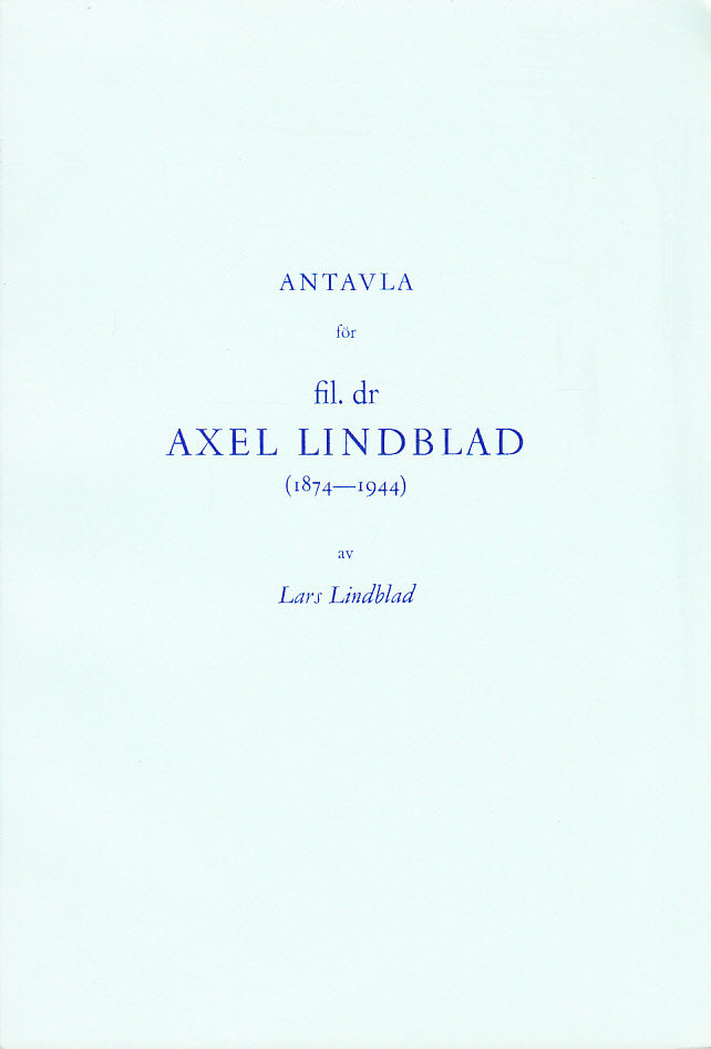 Antavla för fil. dr Axel Lindblad (1874-1944).