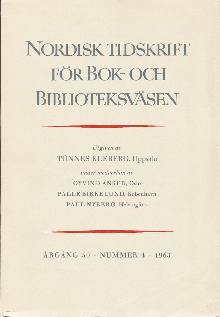 Nordisk tidskrift för bok- och biblioteksväsen. 1963, Nr. 4. Årgång 50.