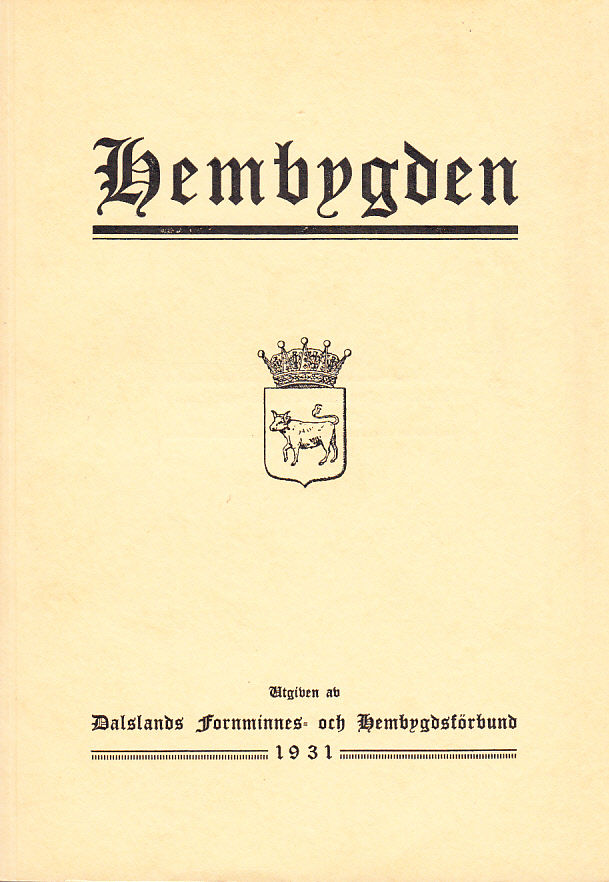 Hembygden 1931. Utgiven av Dalslands Fornminnes- och Hembygdsförbund.