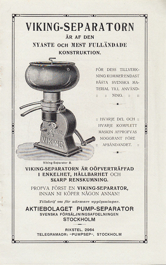 Viking-separatorn är af den nyaste och mest fulländade konstruktion [= rubrik].