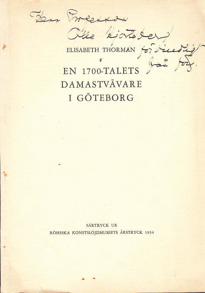 Tryckt på kritpapper. Särtryck ur ‘Röhsska Konstslöjdmuseets årstryck 1934’.