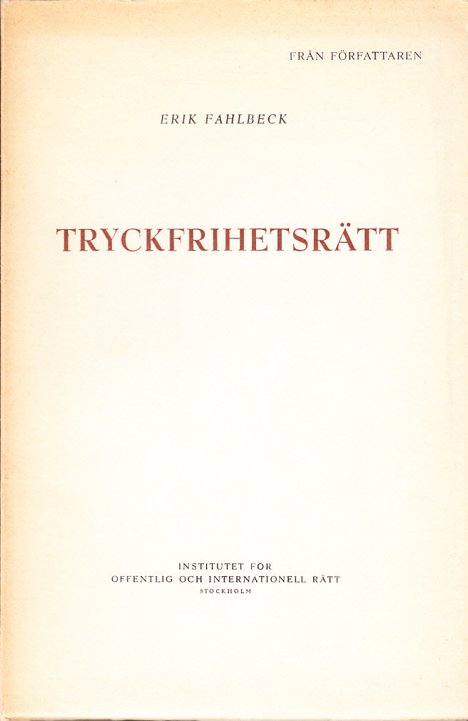 Tryckfrihetsrätt. [Utg. av] Institutet för Offentlig och Internationell Rätt.