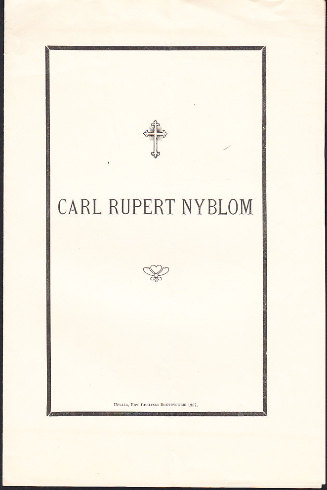 Upsala, Ed. Berlings Boktryckeri, 1907. 8:o. (3) s. Vikt lätt nött ark. Antydan till längsgående vikmärke.