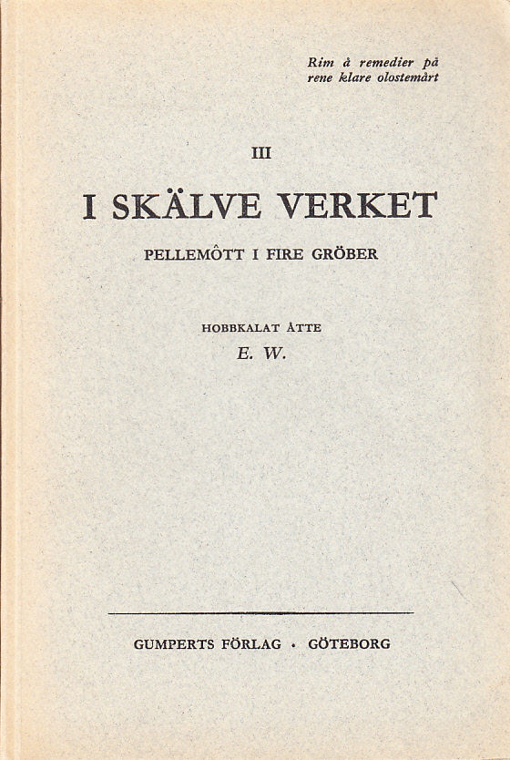 I skälve verket. Pellemôtt i fire gröber. Hobbkalat åtte E.W. [Utg. av] Gumperts förlag.