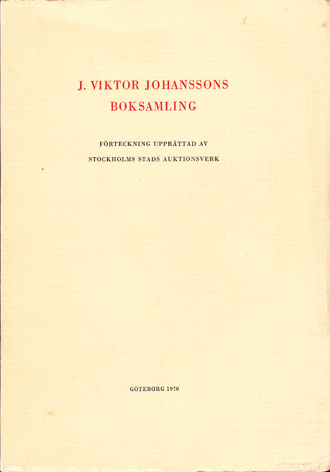 J. Viktor Johanssons boksamling. Förteckning upprättad av Stockholms stads auktionsverk.